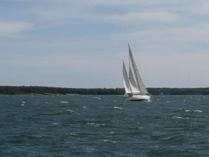 Rano wypływamy dość wcześnie. Zależy nam, żeby do stolicy Alandów dopłynąć rano i mieć czas na zwiedzanie. Do Maarianhamina dopływamy od wschodniej strony. Pan obsługujący most zwodzony, jest tak miły, że wydłuża czas jego otwarcia widząc, że dopływamy. Inaczej musielibyśmy czekać na ponowne jego otwarcie około godziny.