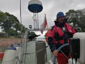 Z Maarianhamina wypływamy dopiero o 1015. Nie żebyśmy byli jacyś zmęczeni. Po prostu trochę nam żal alandzkiej sielanki. Dziś zmierzamy na nasz ostatni przystanek w tym rejonie: Rödhamn. Czerwony Port. Na tej niewielkiej wyspie, skały są na prawdę czerwone. Widać to szczególnie w miejscach wypłukanych przez wodę i na nowych skalnych peknięciach. Świeżo rozłupana skała ma barwę cegły. Razem z szarymi i zielonymi porostami tworzą niezwykłą mozajkę. Na wyspie jest niewiele drzew, trochę wrzosów i jałowców. Na zachodnim brzegu na wysokiej skarpie znajduje się maleńkie muzeum w domu po radiolatarni. Można obejrzeć jak odnajdowano się na morzu w czasach przed GPSem.