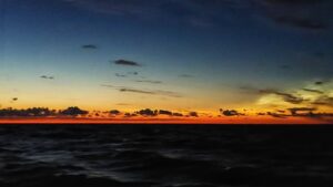 O zachodzie słońca na horyzoncie pojawiło się szwedzkie wybrzeże i wtedy zgodnie z prognozą wiatr umarł. Ostatnie mile pokonywaliśmy niestety na silniku. W Krystianopel zacumowaliśmy w pierwszych 30 minutach niedzieli 🙂