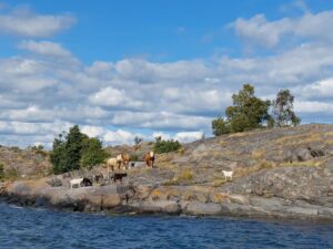 Tak zaklinałam, że od rana wiatr gwiżdże w takielunku i mamy porywy do trzydziestu paru węzłów. Za to świeci słonko i wyspa Öja wygląda dziś zupełnie inaczej. Zobaczcie sami!
