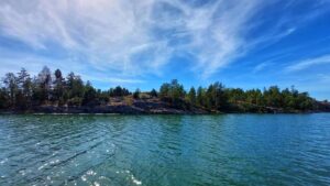 Byxelkrok. Mała wioska na północnym krańcu Olandii. Tu już widać, że jest po letnim sezonie. Niedobitki turystów chodzą między pozamykanymi budkami z jedzeniem i pamiątkami. A między tym wszystkim biega zbłąkany zając… My tradycyjnie korzystamy z plaży i budujemy swój mostek z kamieni!