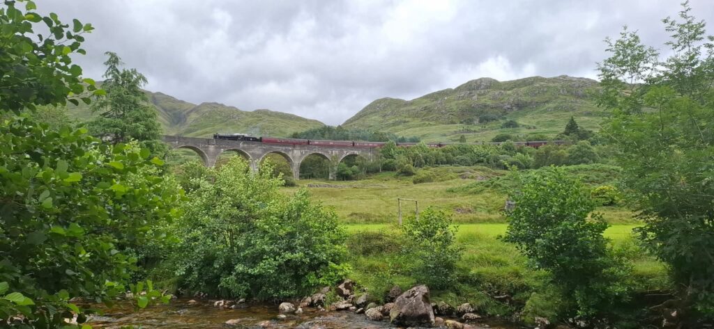 Na poprawę humoru odwiedzamy wiadukt Glenfinnan – znany z filmów o Harrym Potterze. Wiadukt został zbudowany przez Robert McAlpine & Sons według projektu Simpson & Wilson. Ma 21-łuków, długość 380 i wysokość 30 metrów. Jest częścią linii kolejowej West Highland Railway Line, łączącej Mallaig, Fort William i Oban z Glasgow.Uwierzcie mi, że więcej mugoli ogląda ten pociąg z doliny, niż jedzie nim czarodziejów!***