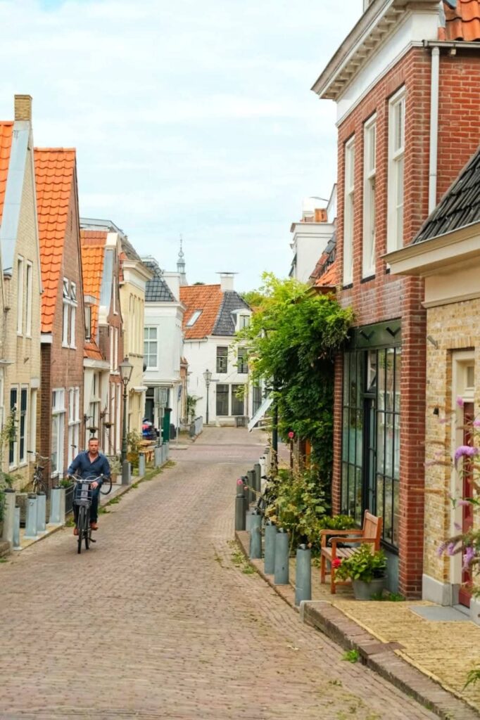 Na początku XII wieku w wiosce Almenum osiedlili się mnisi. A że byli pracowici, to dzięki przekopaniu kanałów oraz usprawnieniu okolicznego handlu drogą wodną, ich klasztor stał się najbogatszym w całej Fryzji. Zyskało na tym okoliczne Harlingen, które dzięki zakonnym pieniądzom mogło się rozwijać niezwykle prężnie. Już w 1234 roku miasto otrzymało prawa miejskie – czyli przed Amsterdamem!Jak to w życiu bywa, mnisi w obliczu konkurencji zwinęli swoje biznesy i wyprowadzili się w 1518 roku. W 1566 roku opracowano plan włączenia centrum wsi Almenum w obręb murów miejskich Harlingen.Po tamtym okresie w Harlingen mamy nadal działającą sieć kanałów i uliczki pełne starych kupieckich domów. W jednym z nich zaopatrujemy się w solidny zapas serów, oliwek i oczywiście vijgenbrood!