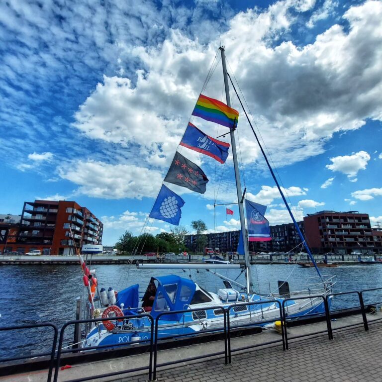 Tak stoimy. Kto przyjdzie na kawę i herbatę w cieniu flag? Baltic Sail Gdańsk