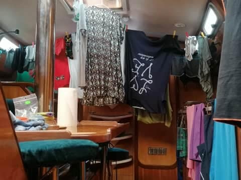 Wczoraj wieczorem ogarnęliśmy pranie, kąpanie, a chętni wygrzali się w saunie. Dziś nasz jacht wygląda odrobinę jak tabor cygański. Wszędzie coś…