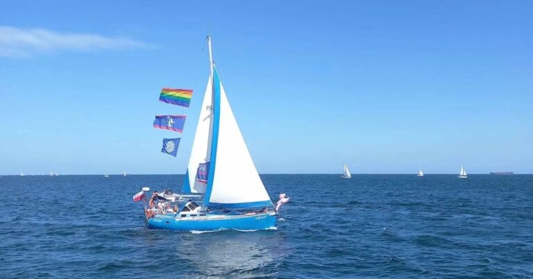 Dzień dobry! Wygląda na to, że obiadek będzie już w Helu. Właśnie mijamy Rozewie 🙂